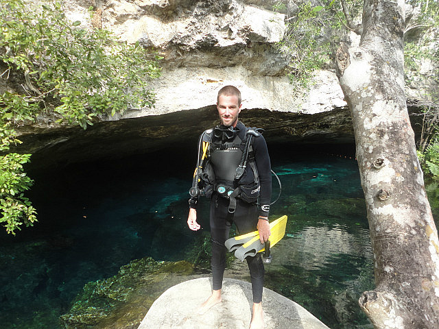 Anyway… I had continually heard from other divers that the place to dive in this region is in one of the many freshwater caverns formed by sinkholes or ‘cenotes’. I signed up at a local dive-shop who offered to take the girls as well so they could still experience the cenotes through snorkeling. I will admit I did have some concerns. Cavern diving means overhead underwater environments, probably quite dark, probably quite enclosed. I’m a bit claustrophobic but not enough to sway me from the adventure.